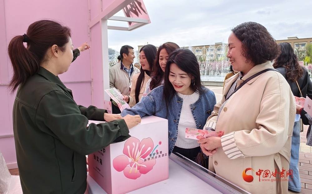 4月10日,在金徽酒文化生态旅游景区樱花正途,旅客踏春赏花,乐享春光。