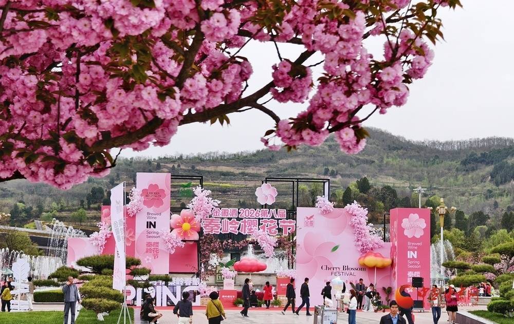 4月10日,2026第八届金徽酒秦岭樱花节在金徽酒文化生态旅游景区启幕。