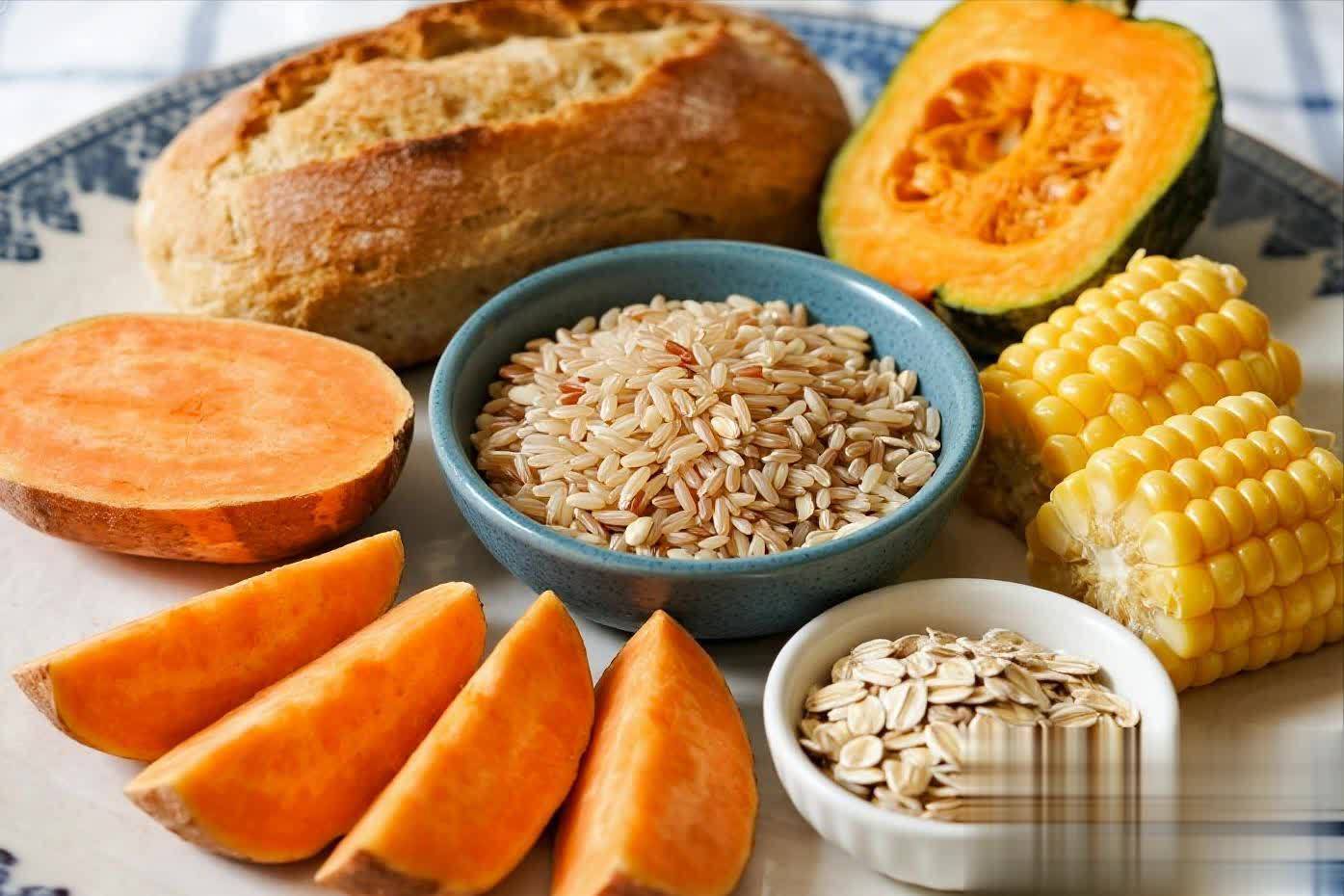 选定优质碳水:用糙米、燕麦、藜麦、全麦面包、红薯、玉米、南瓜等全谷物和薯类替代精米白面。