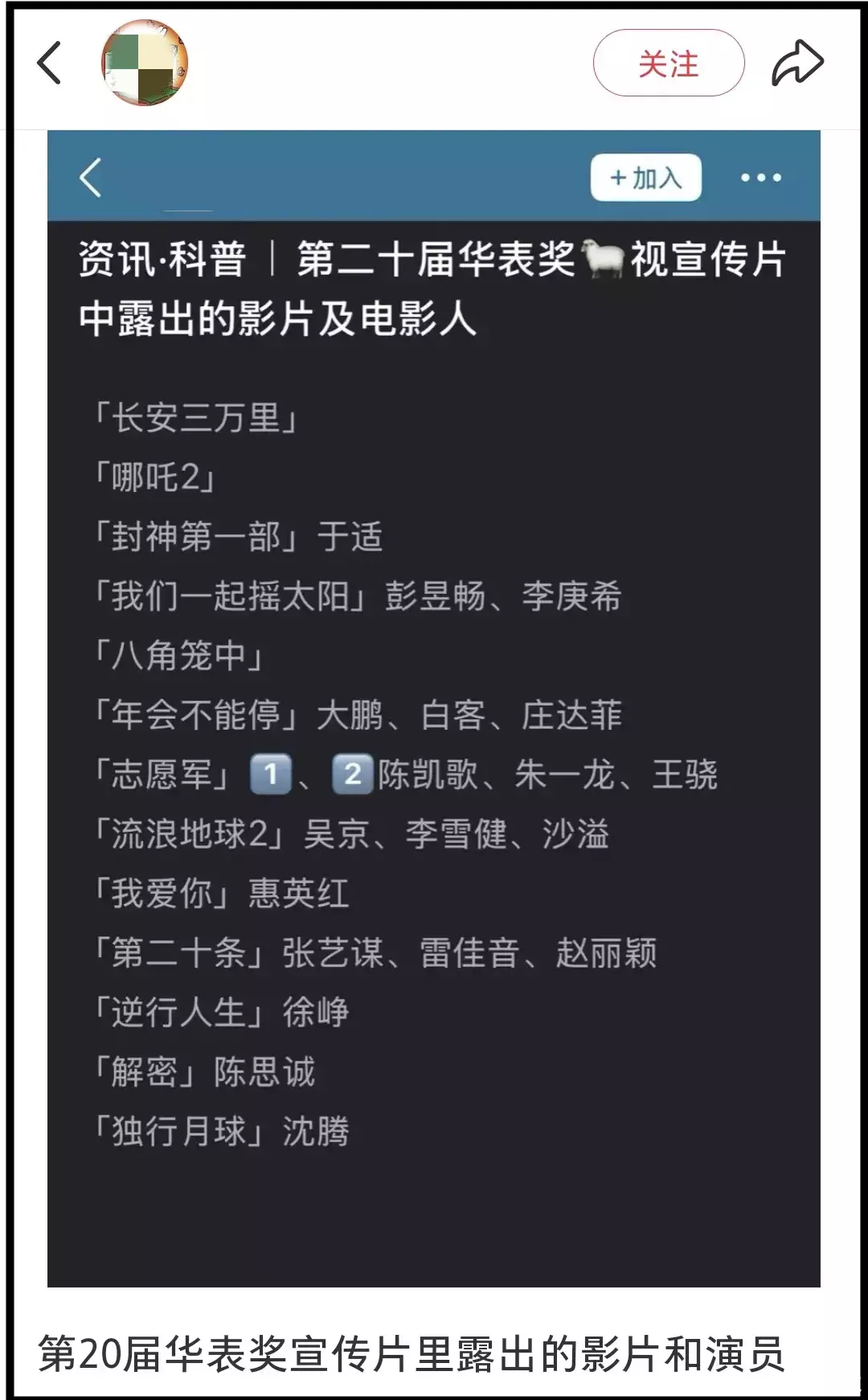 凭据网友整理名单,在央视电影频谈华表奖宣传片出镜的明星和导演共有19位,诚然他们主演的电影有的不在华表奖评比期,但对比过往获奖名单,频频在宣传片中出镜的明星更大致率参加提名名单。