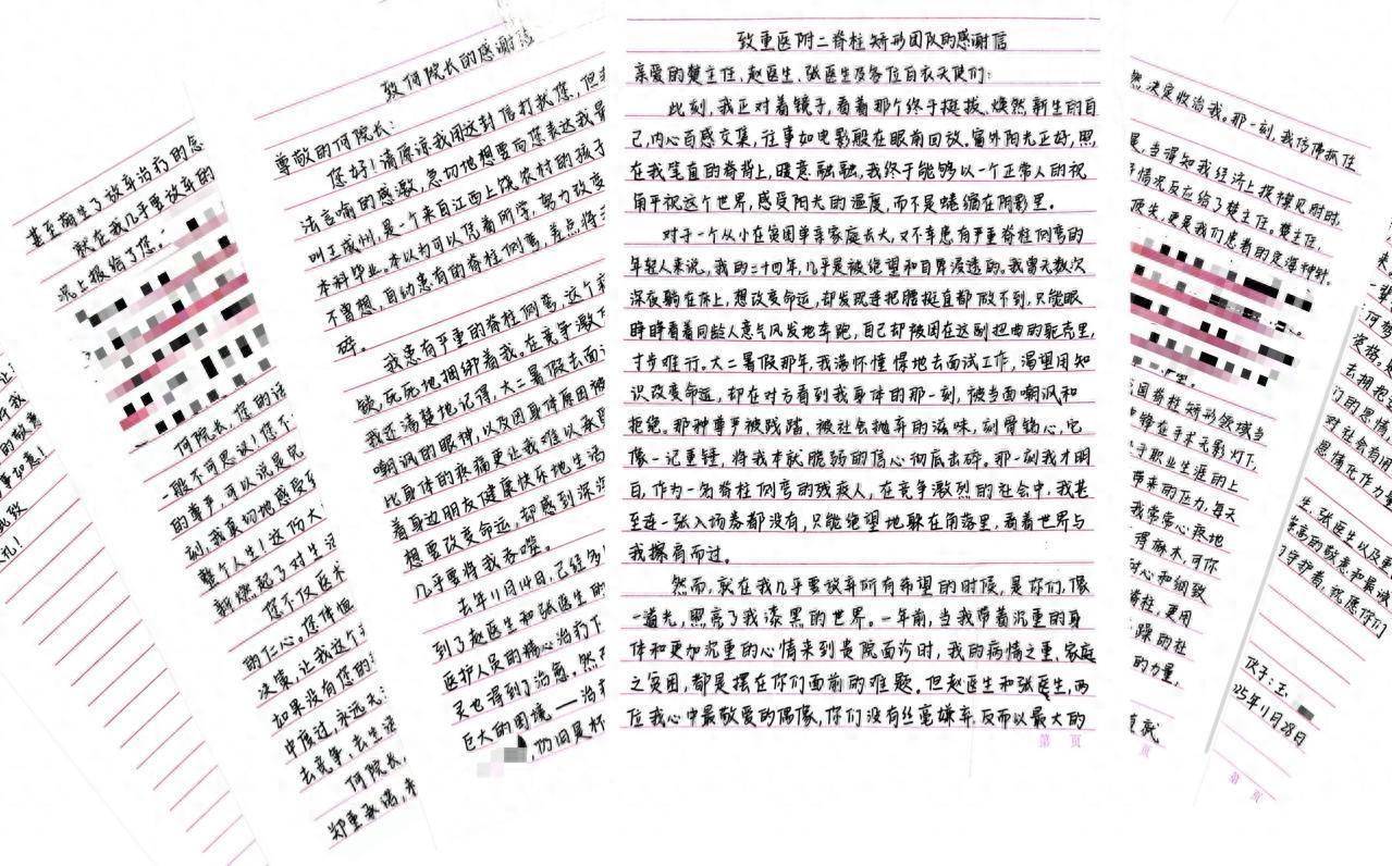 “窗外阳光正值,照在我直接的脊背上,暖意融融,我终于概况以一个平淡东谈主的视角平视这个天下,感受阳光的温度,而不是瑟索在暗影里。”近日,来自江西的24岁小王,在重医附二院骨科二病区圆满处置了脊柱乖张、神气自卑问题。为感谢这份恩情,他分手给病院与骨科二病区主任楚磊团队写了信,饱含忠实厚谊的字字句句,纪录了他从“弯腰瑟索”到“抬头挺胸”的新生。