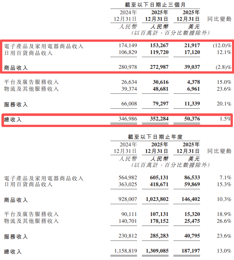 是以尽管四季度囊括了双十一大促这个关节节点,但京东的商品收入,已经径直进入了负增长。